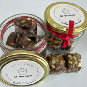Encased within a delicate layer of flaky filo pastry, these bite-sized delights offer a harmonious balance of textures, with the crispness of the pastry complementing the smoothness of the date and nut filling.