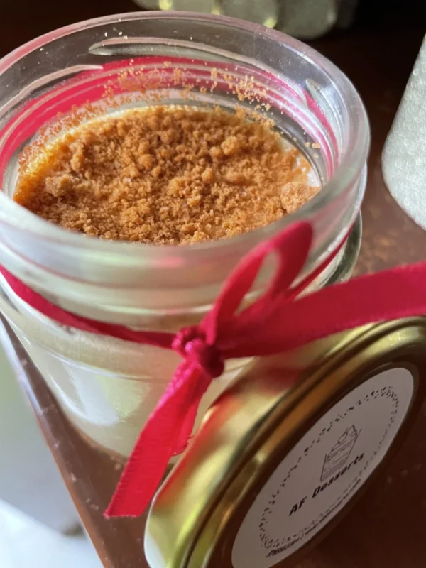 Experience the irresistible charm of Lotus Biscoff cookies transformed into a heavenly dessert. Each jar is meticulously layered with creamy Lotus Biscoff-flavored mousse and crushed Biscoff cookies. Indulge in the perfect balance of creamy, crunchy, and caramel flavors that will captivate your taste buds